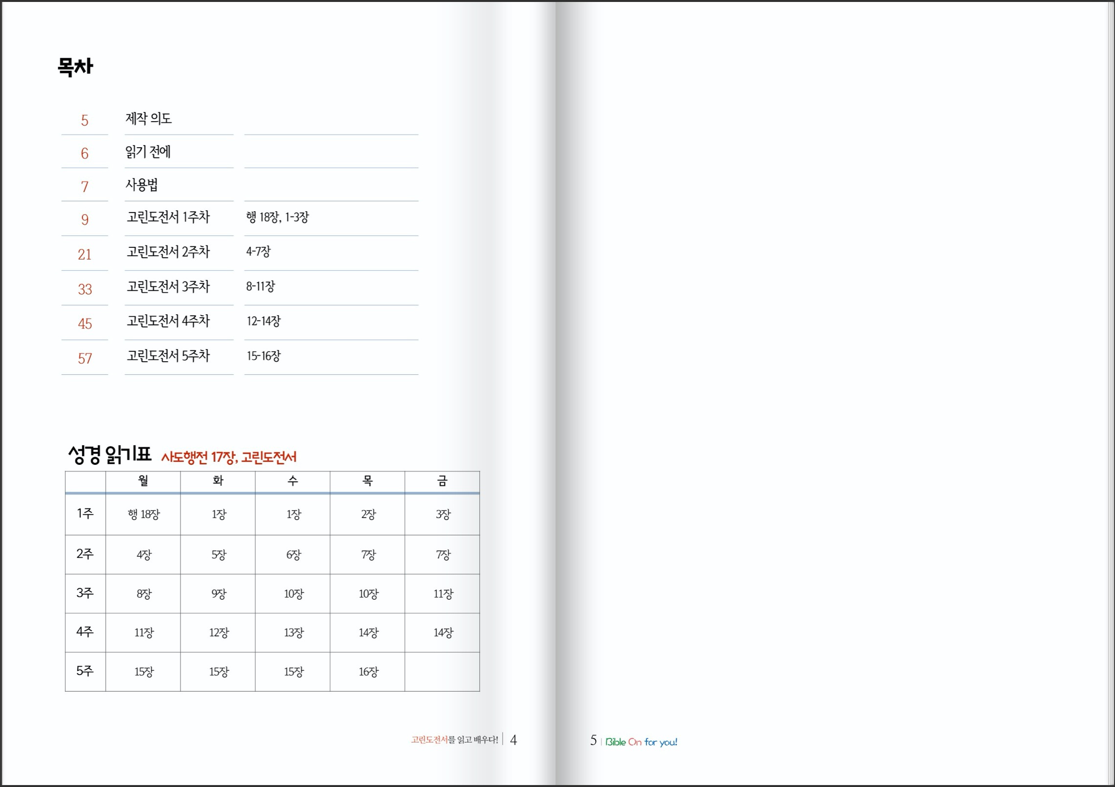 매일 정해진 분량을(월 -금요일), 5주 동안 읽습니다.