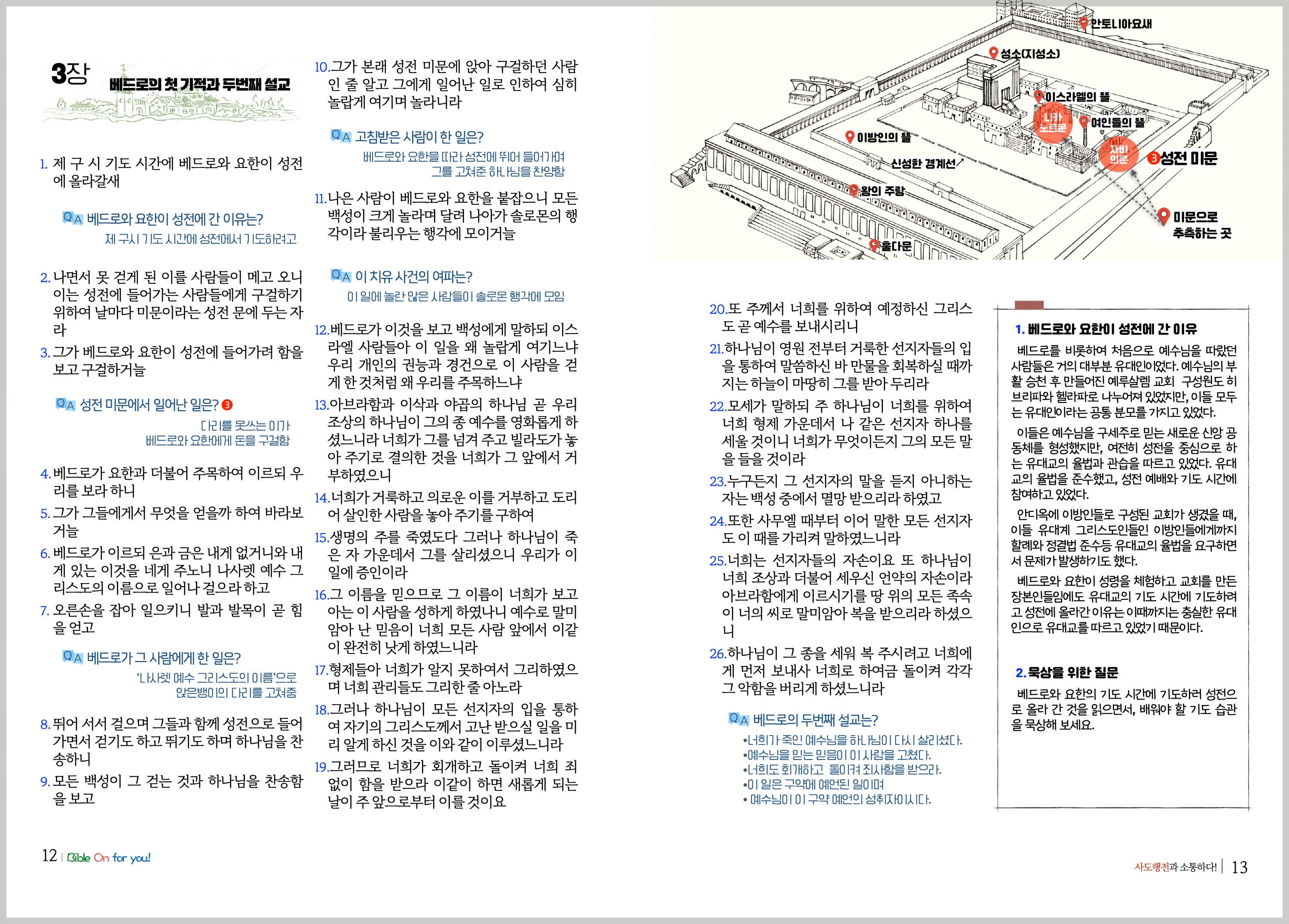 주어진 질문과 답을 보면서 성경 내용을 정리하는 형식입니다.