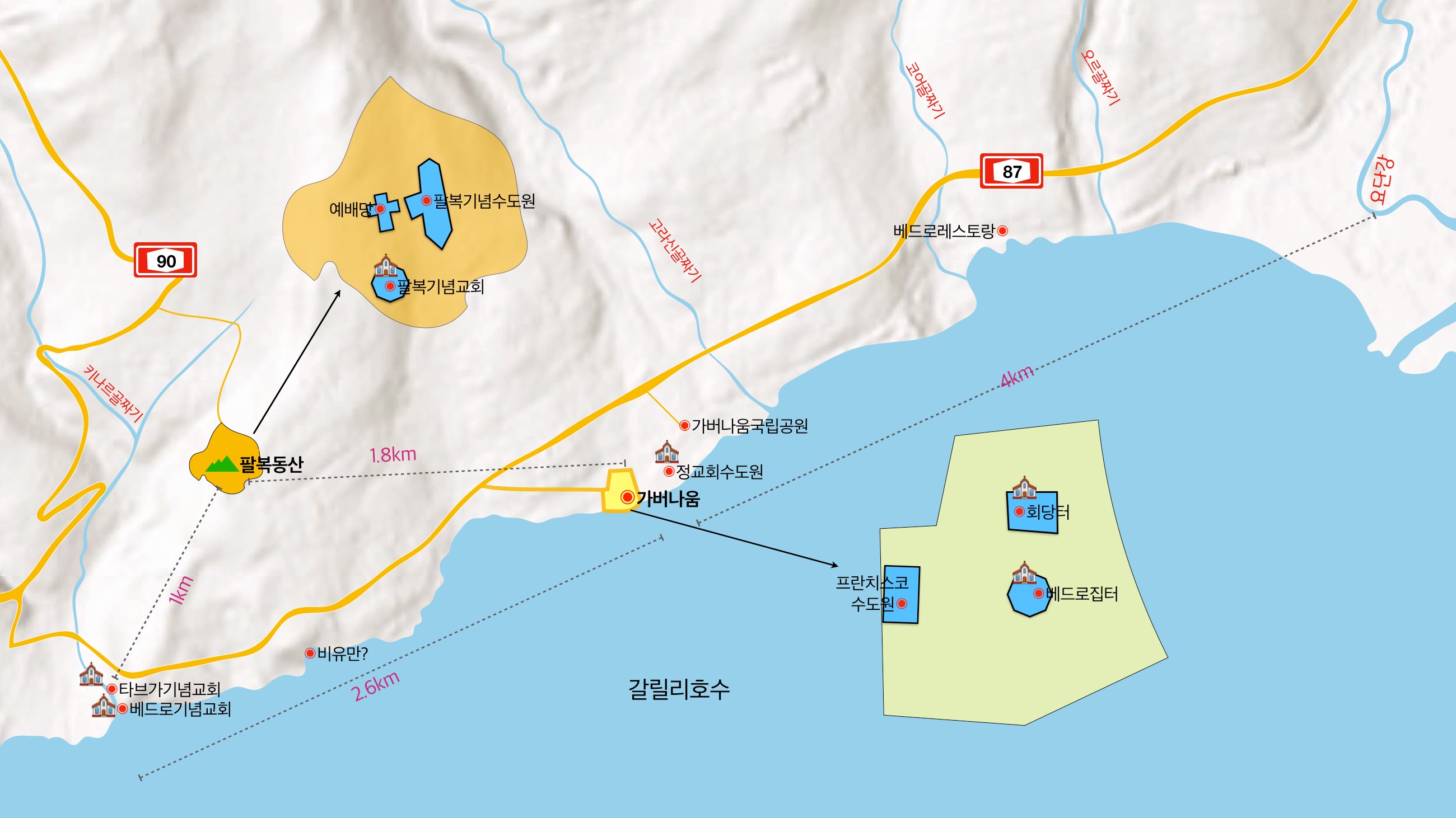 이곳은 가버나움에서 직선거리로 2km 정도로 가까운 곳에 있다.