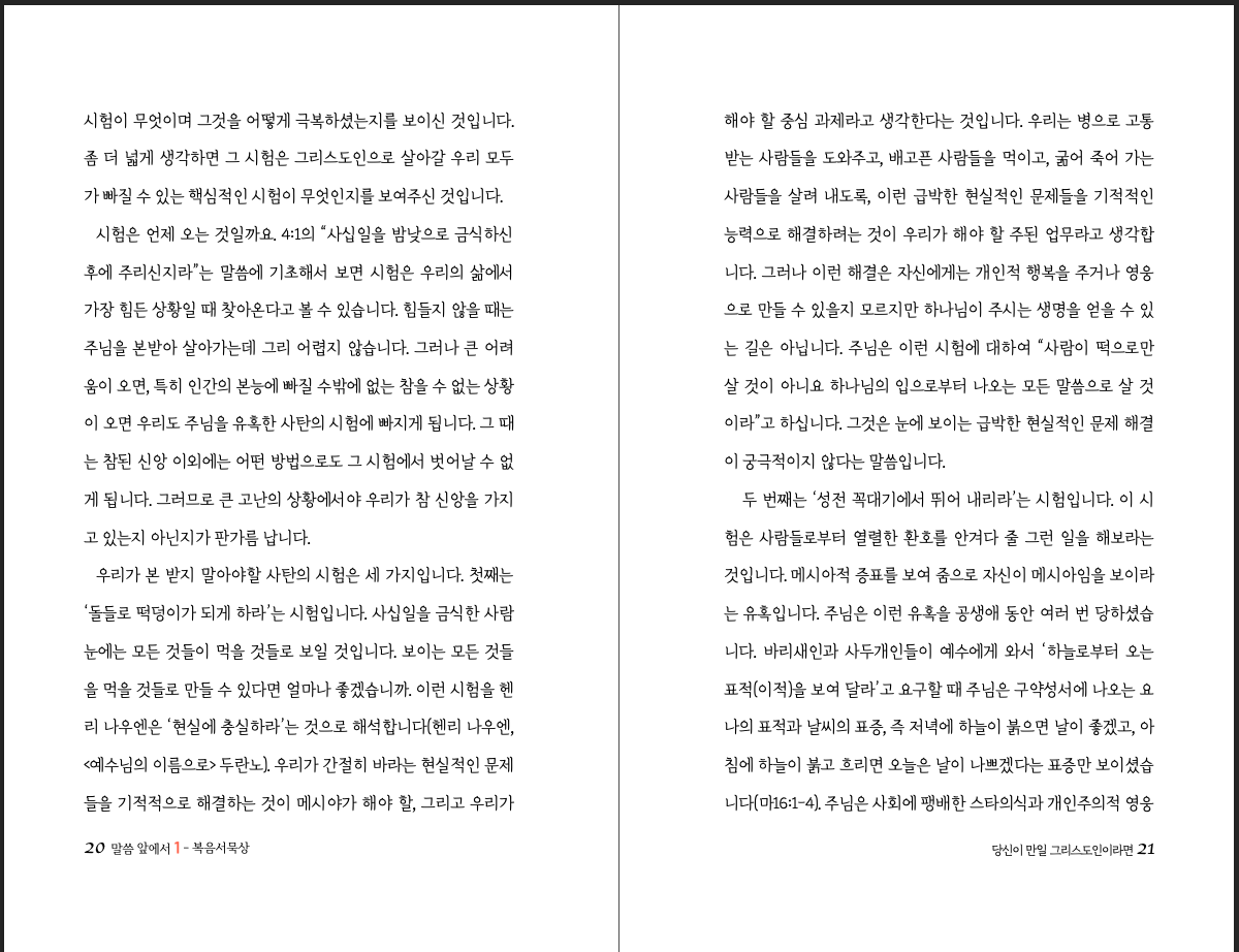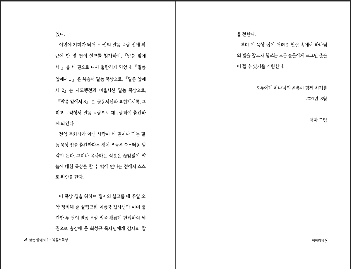 카테고리 없음 설교집) 복음서 묵상 - 말씀 앞에서 1 BibleOn4U 2021. 7. 19. 12:37 말씀앞에서 묵상집 시리즈는 김춘기 목사의 설교 모음집입니다. 복음서 묵상 모음집인 "말씀 앞에서 1"을 시작으로 기회가 되는대로 " 말씀앞에서 2, 3집"을 발간할 예정입니다. 책주문 설교집 미리보기 공유하기 게시글 관리 바이블온(도서출판성소) 저작자표시 비영리 변경금지 (새창열림)