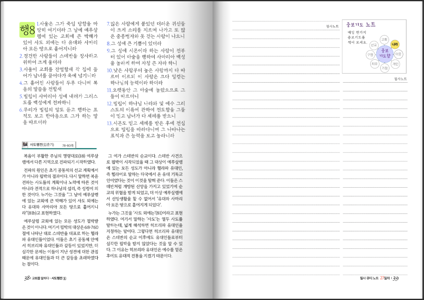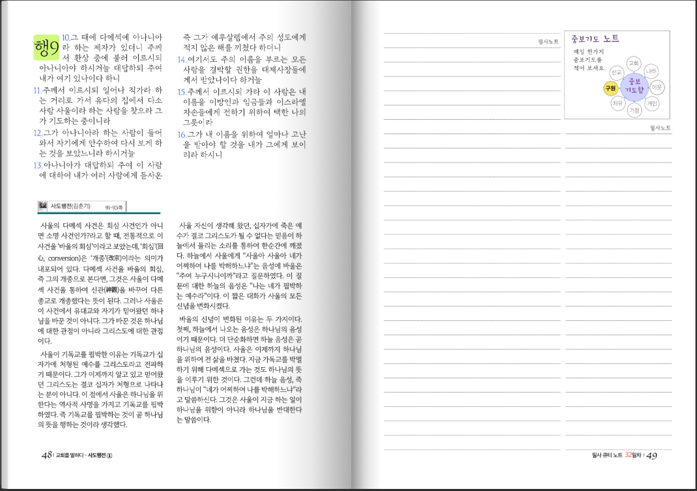 후반부에 사도행전 1-12장의 필사 큐티 파트로
