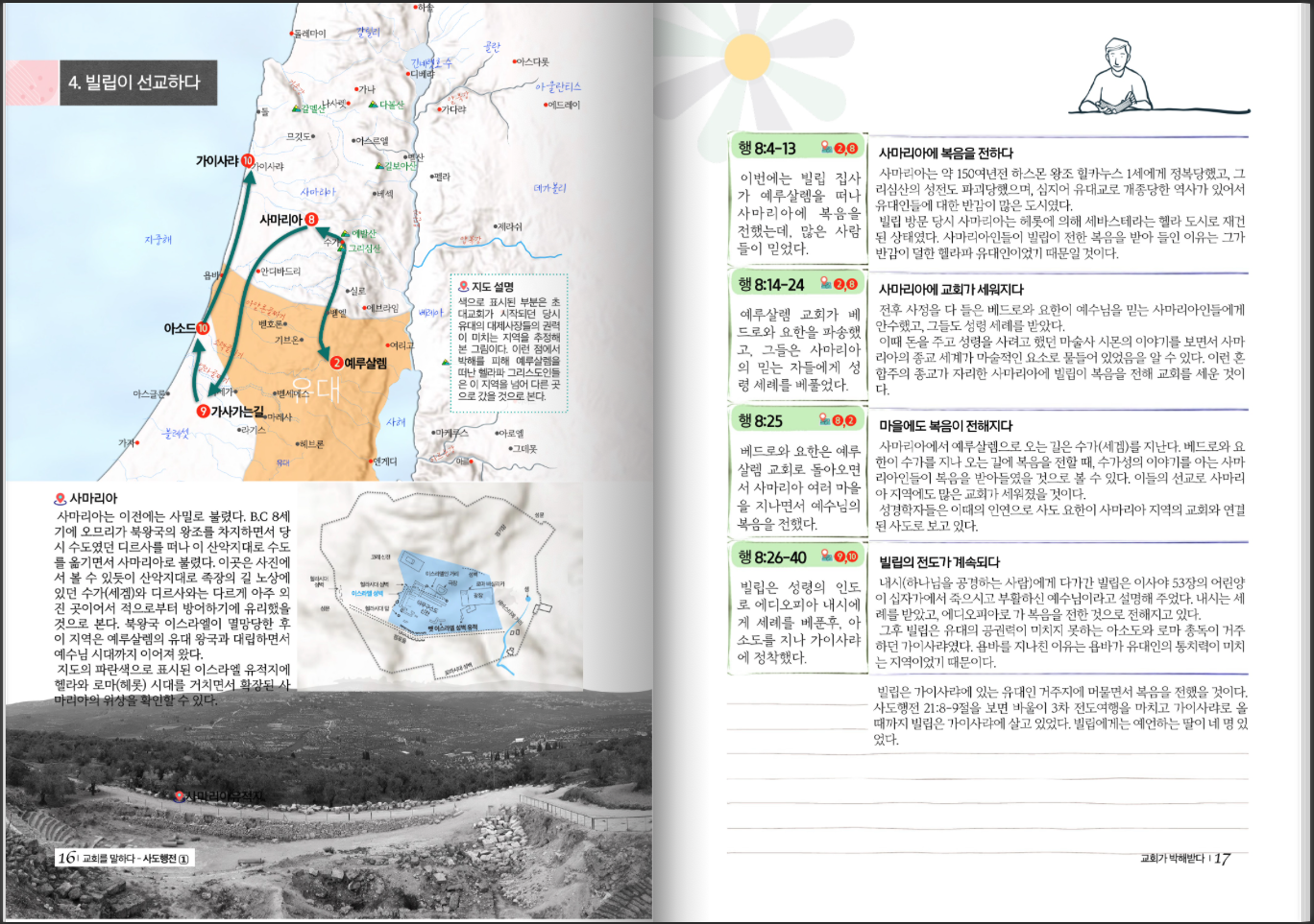 교회에서 지도와 사진을 따라 여행하듯이 배우는 교재가 있습니다.