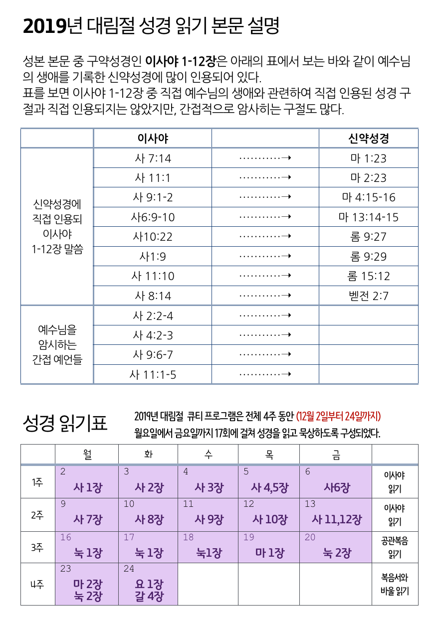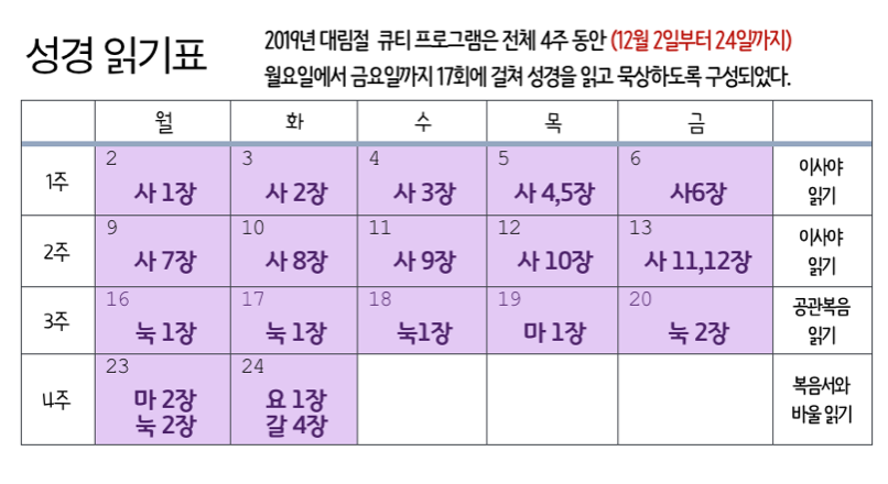 2019년 대림절 성경 읽기표