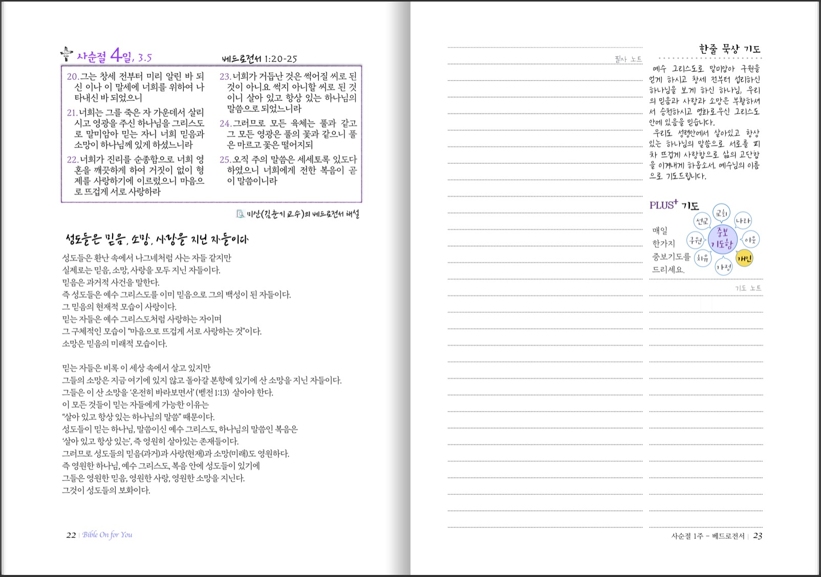 3. 매일의 말씀 필사 노트와 중보 기도노트가 구분되었습니다.
