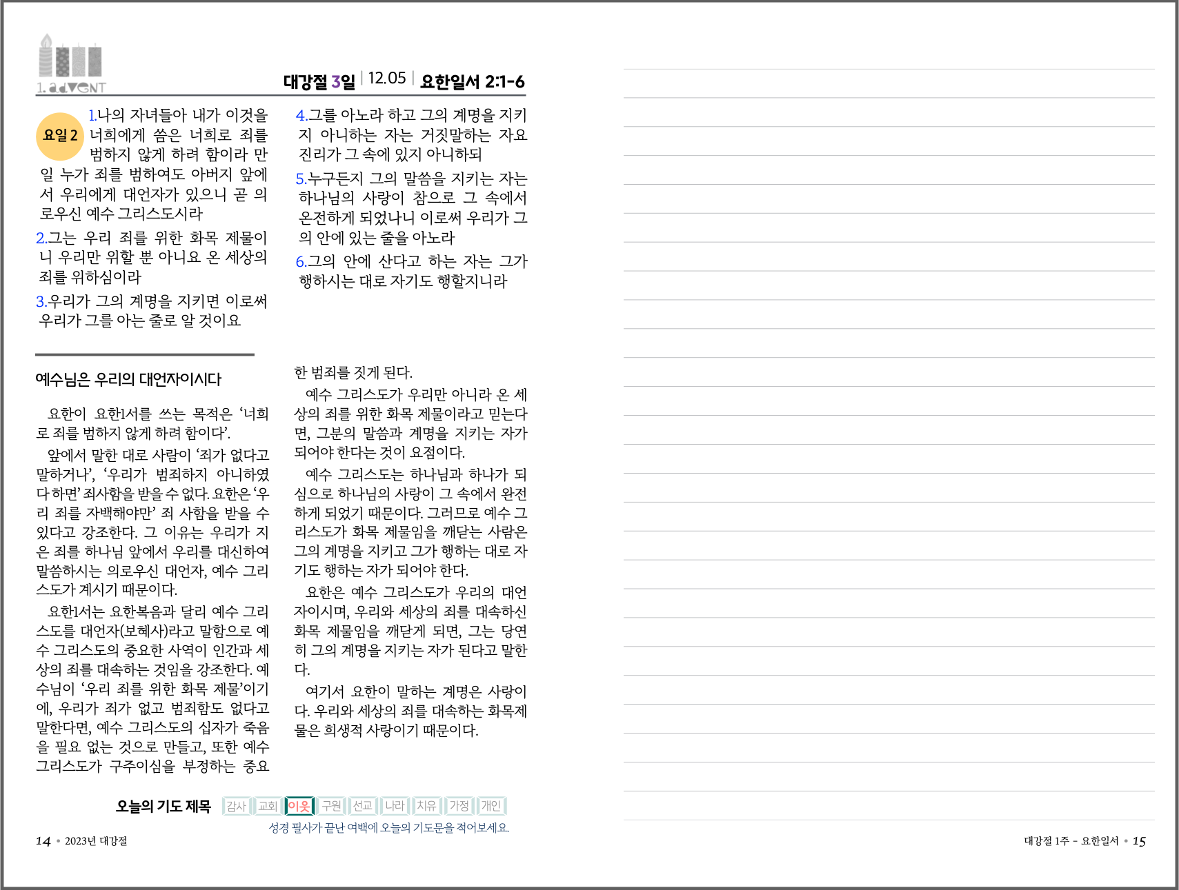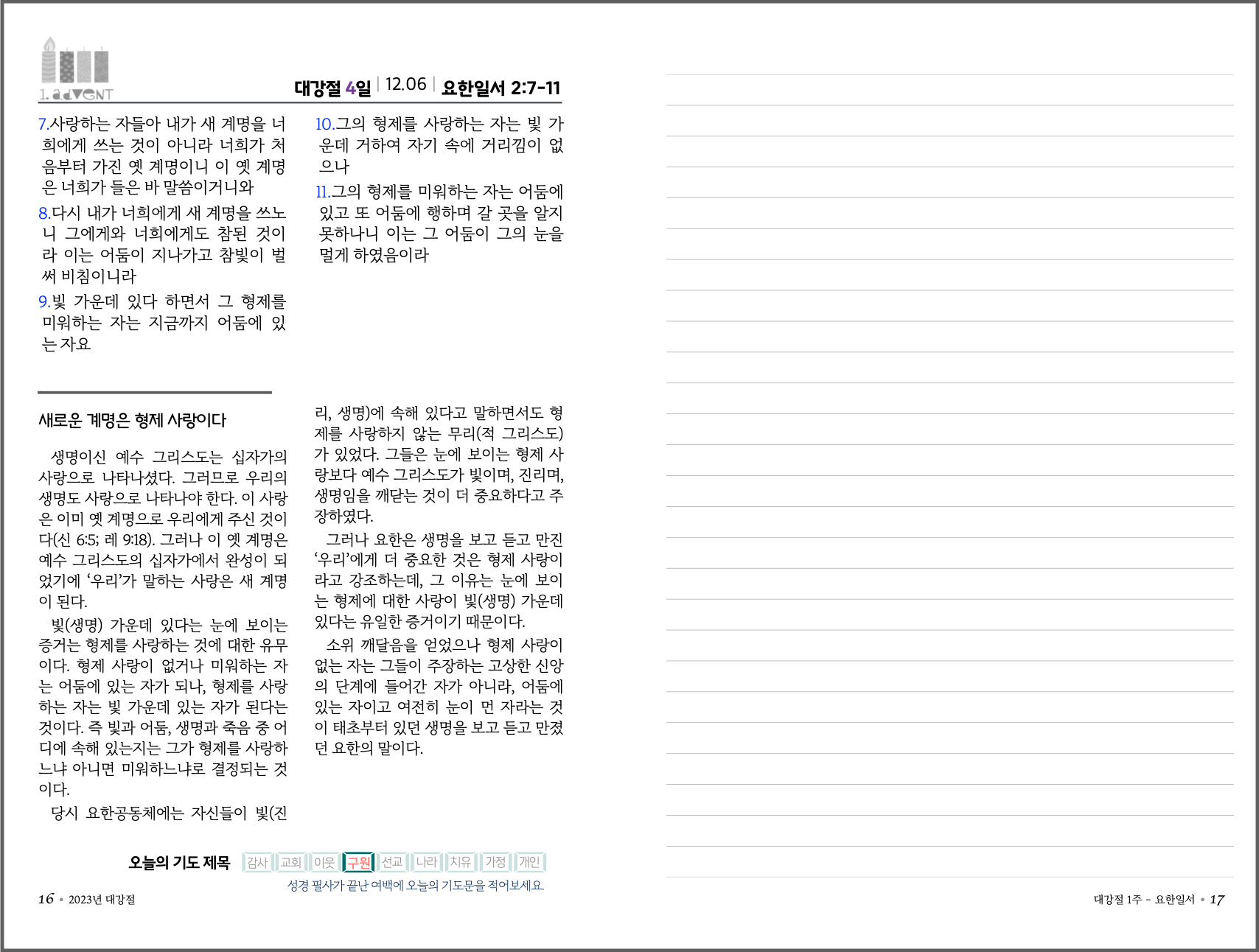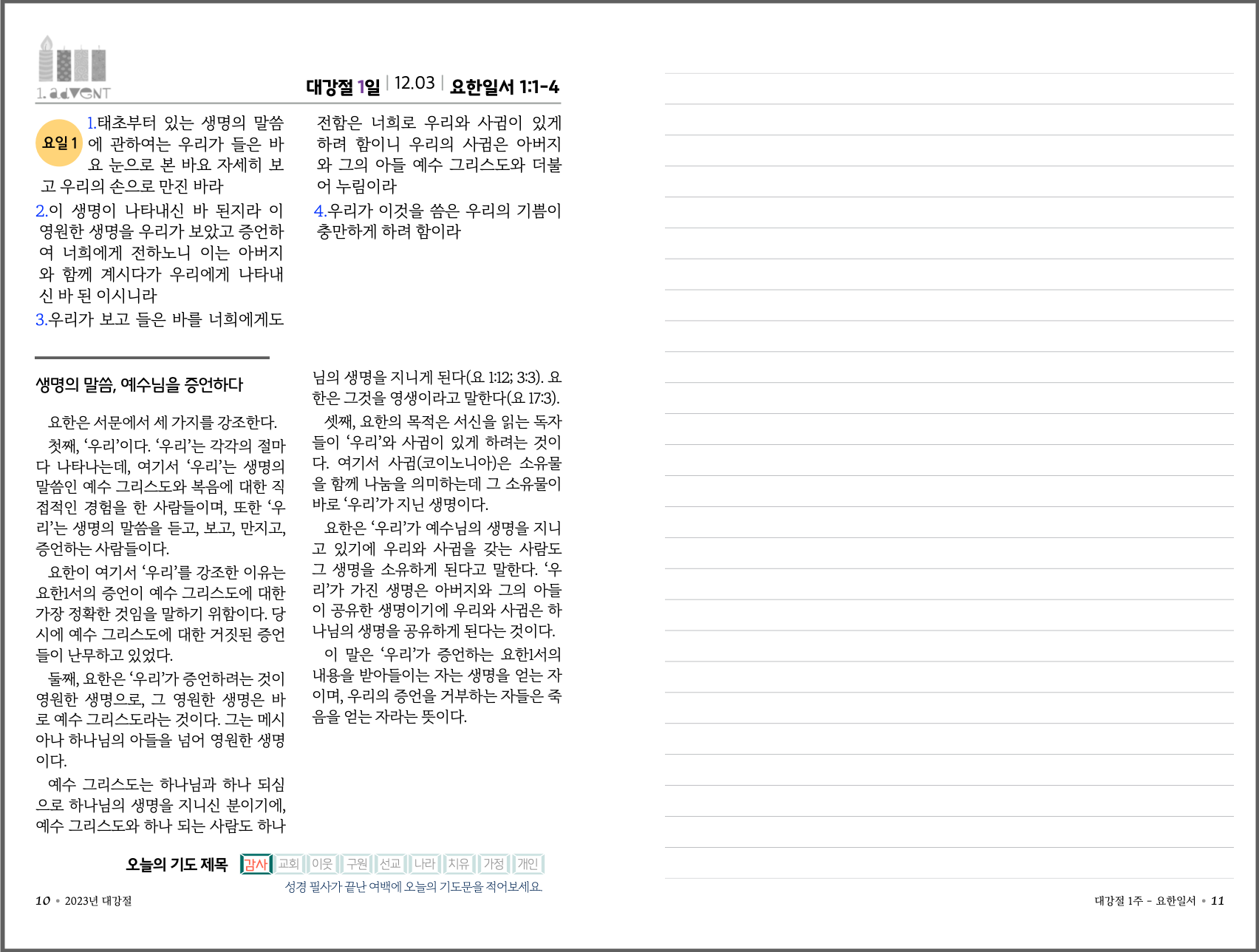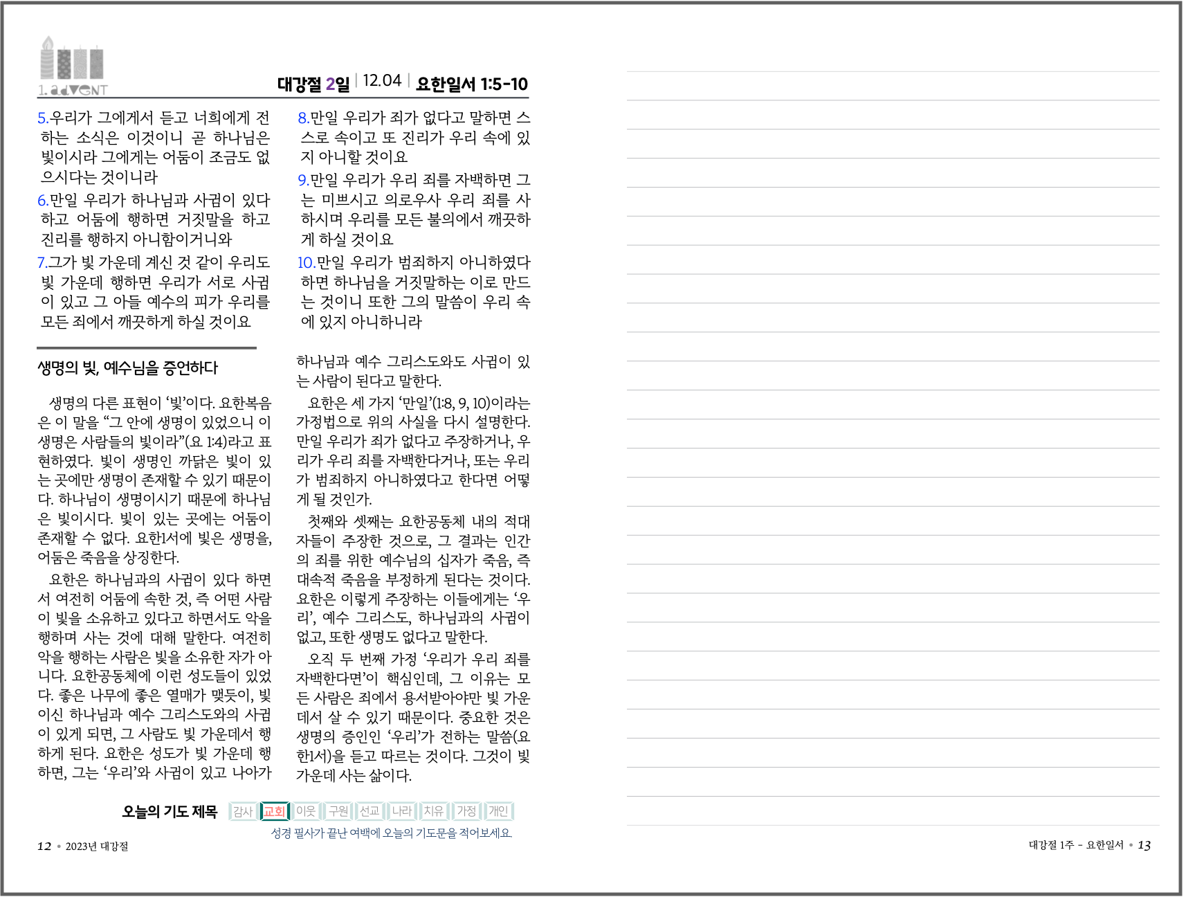 2023년 대강절 필사 큐티 교재 견본