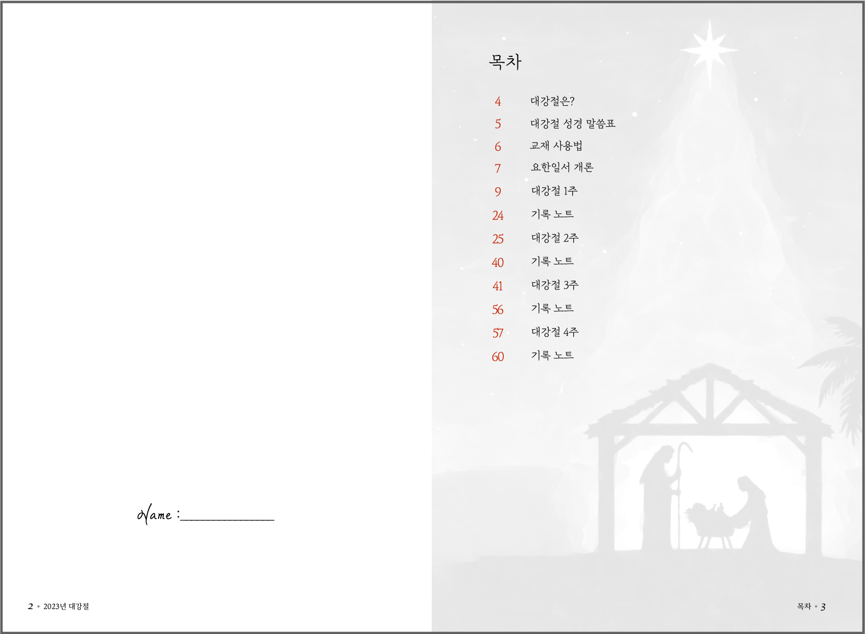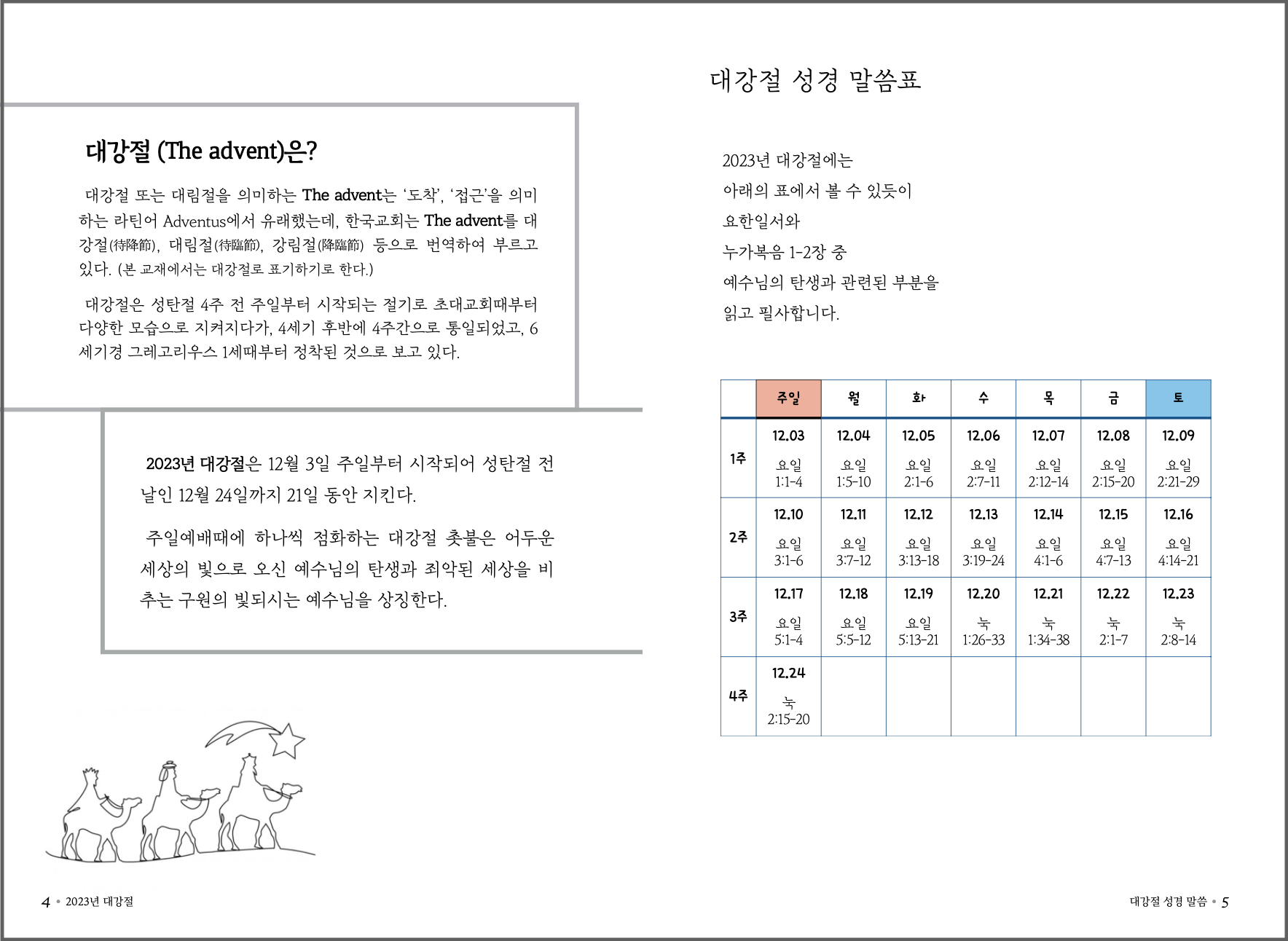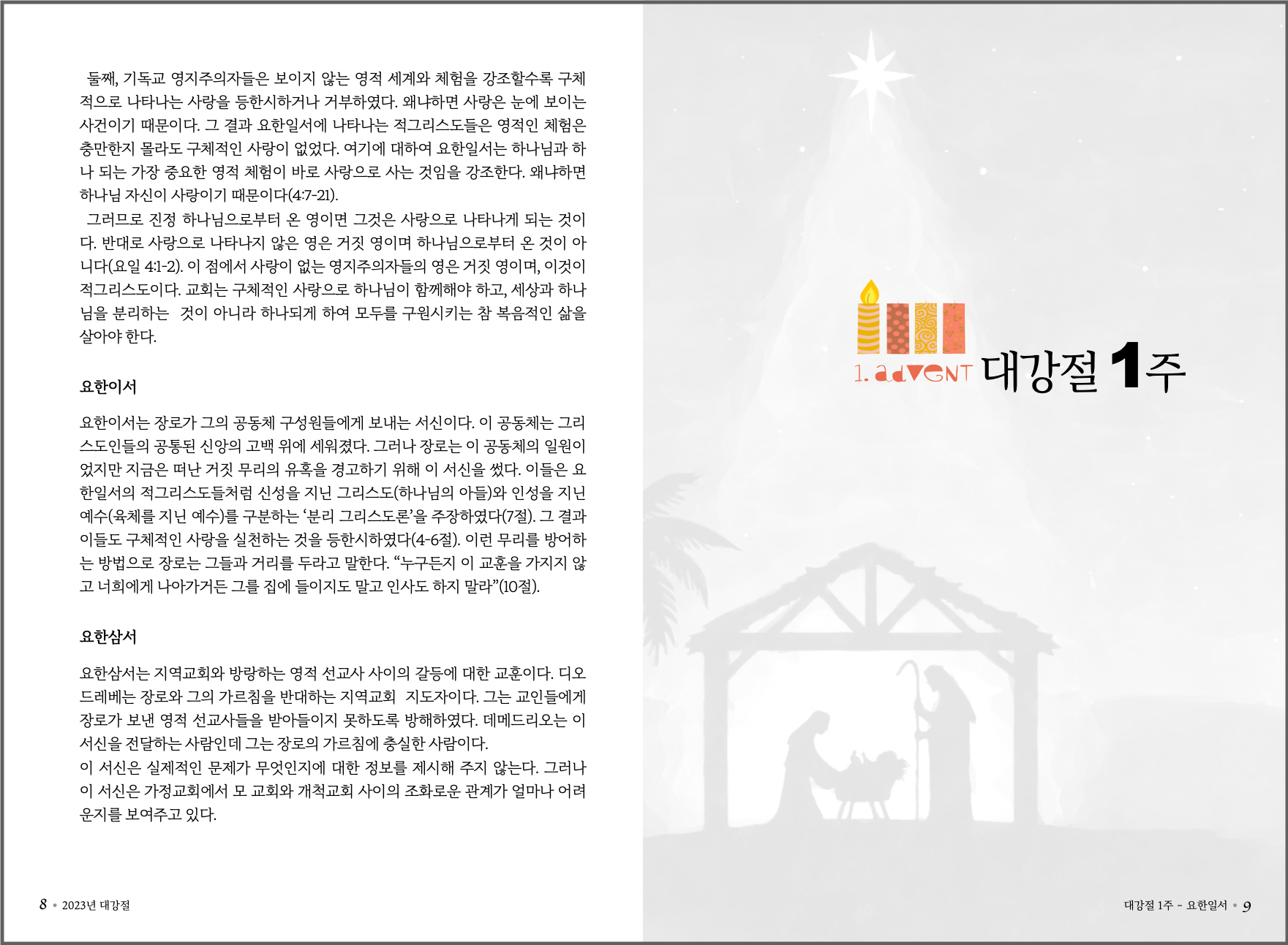 2023년 대강절 교재는 요한일서 + 누가복음 1,2장의 말씀을 본문으로 구성하였습니다.