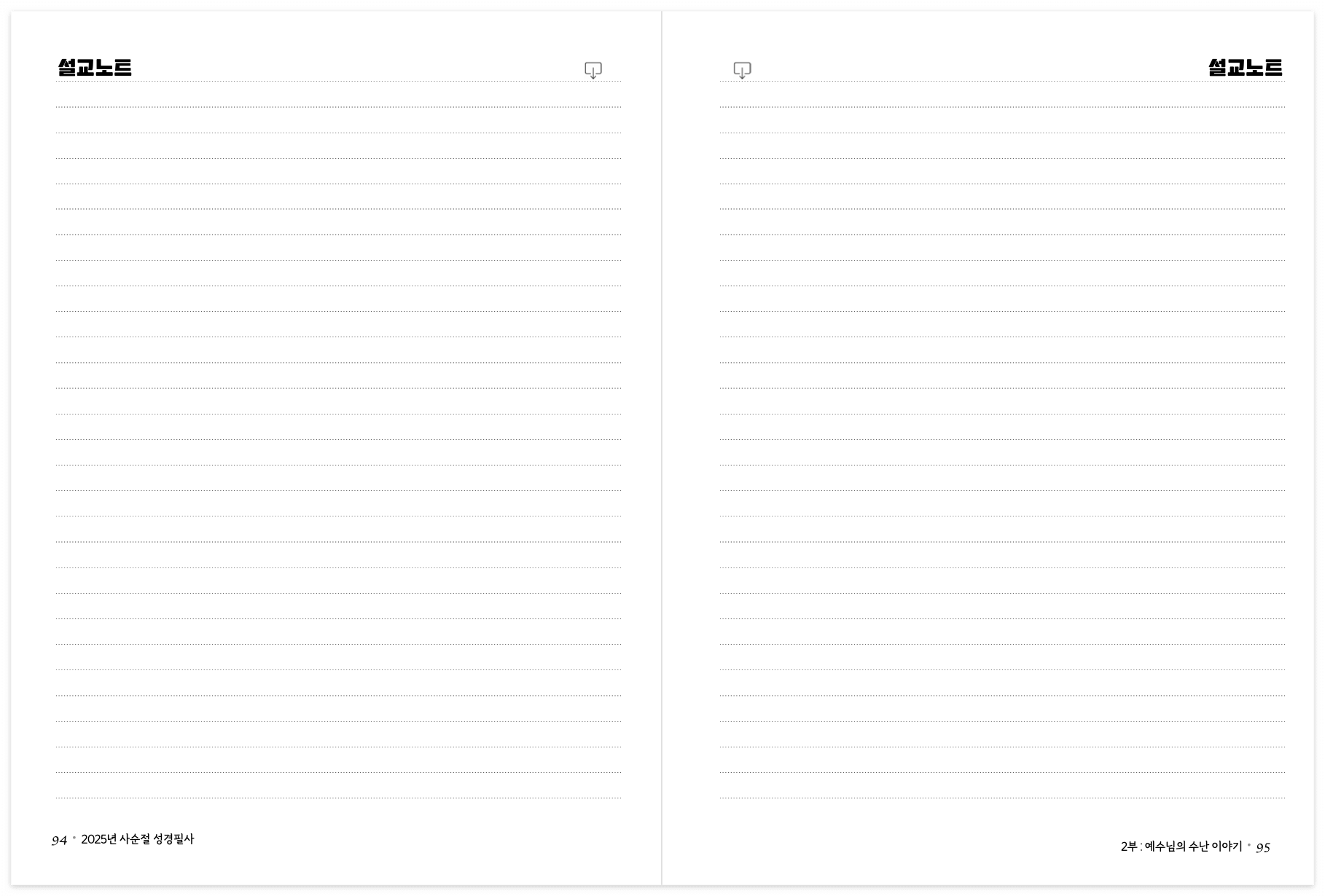 사순절 기간 동안 주일 예배 설교를 적을 노트를 첨부해 두었습니다.