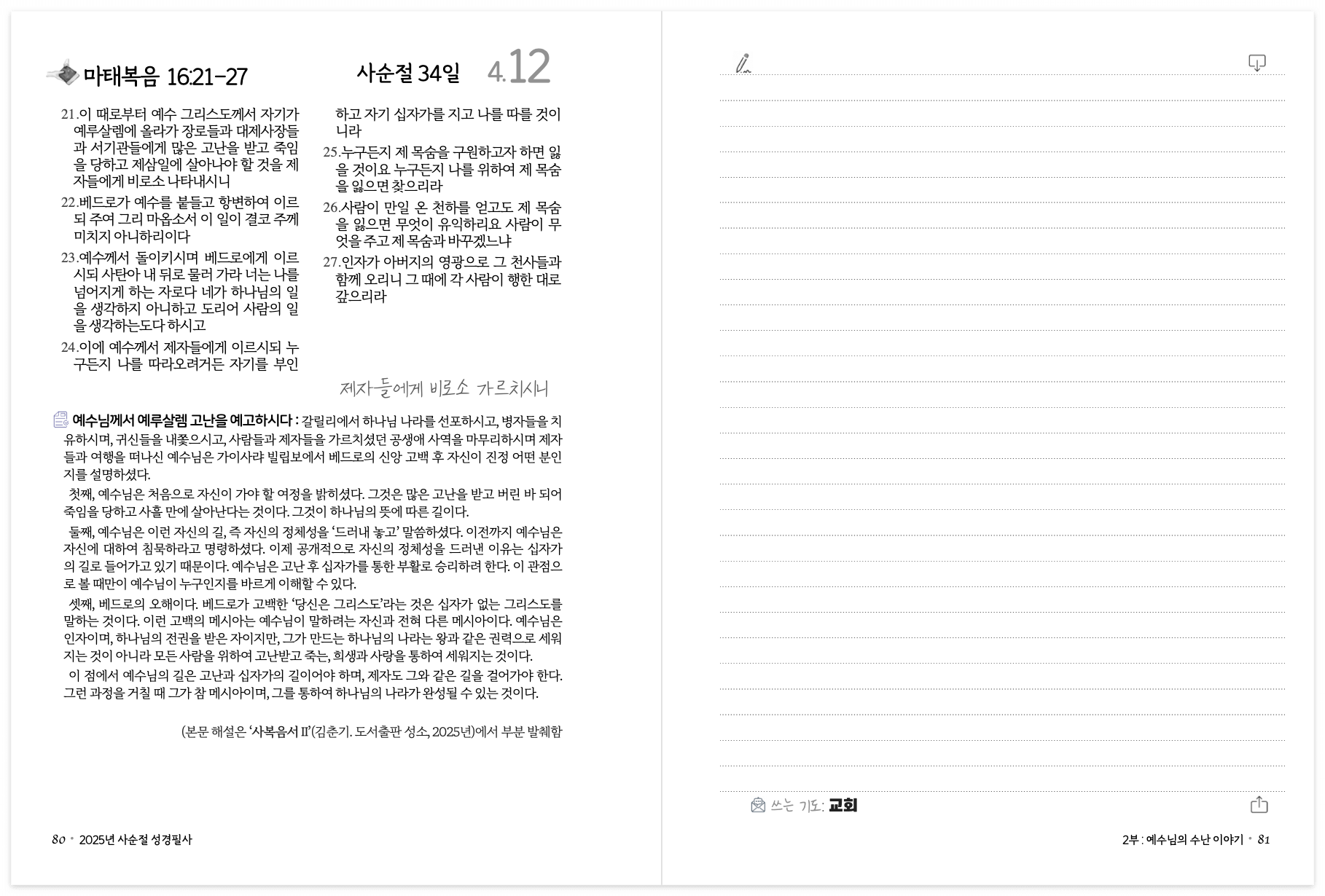 사순절 성경필사교재를