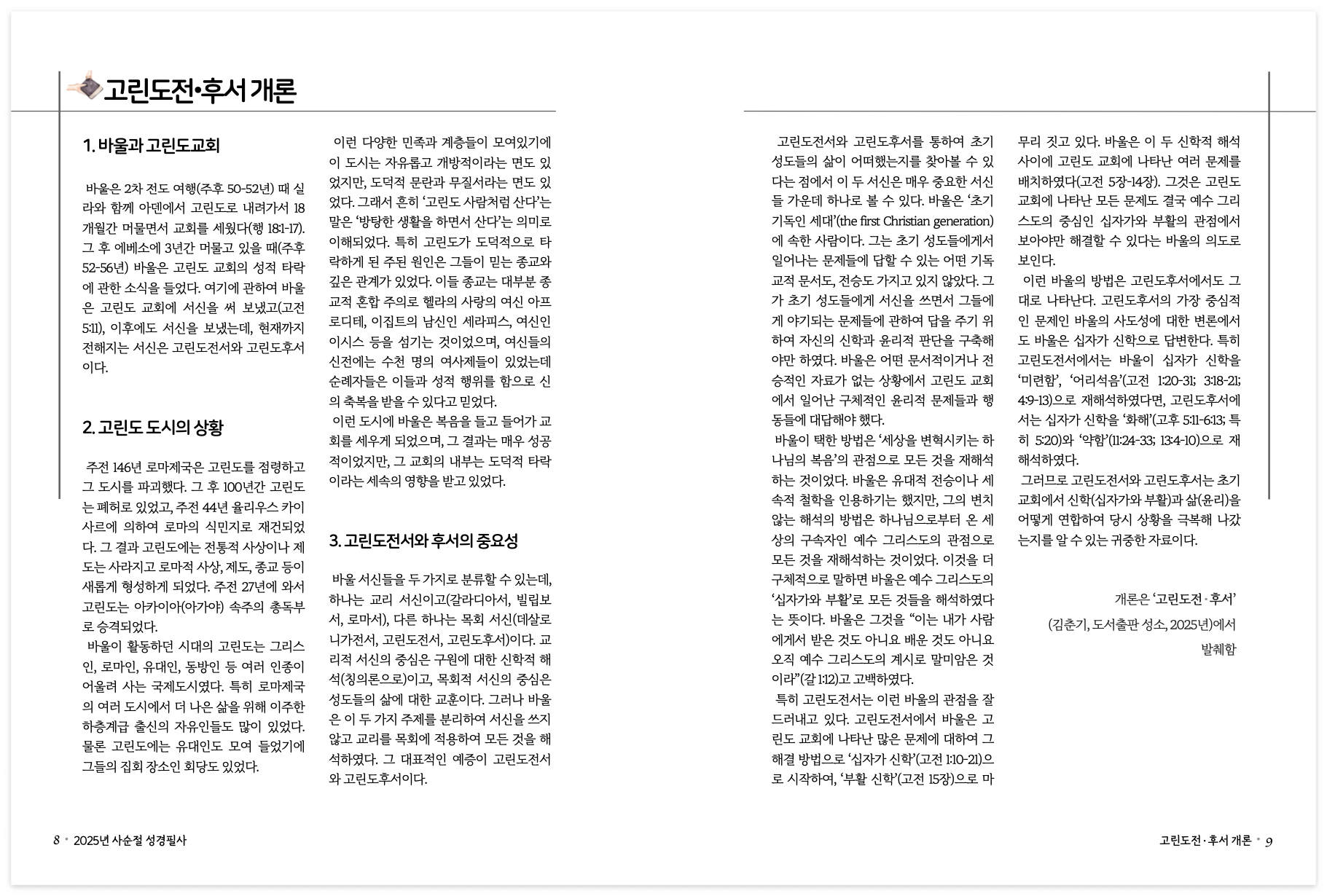 하나님의 능력인 ‘십자가의 도’를 다시 가르치는 바울의 고린도전∙후서와,